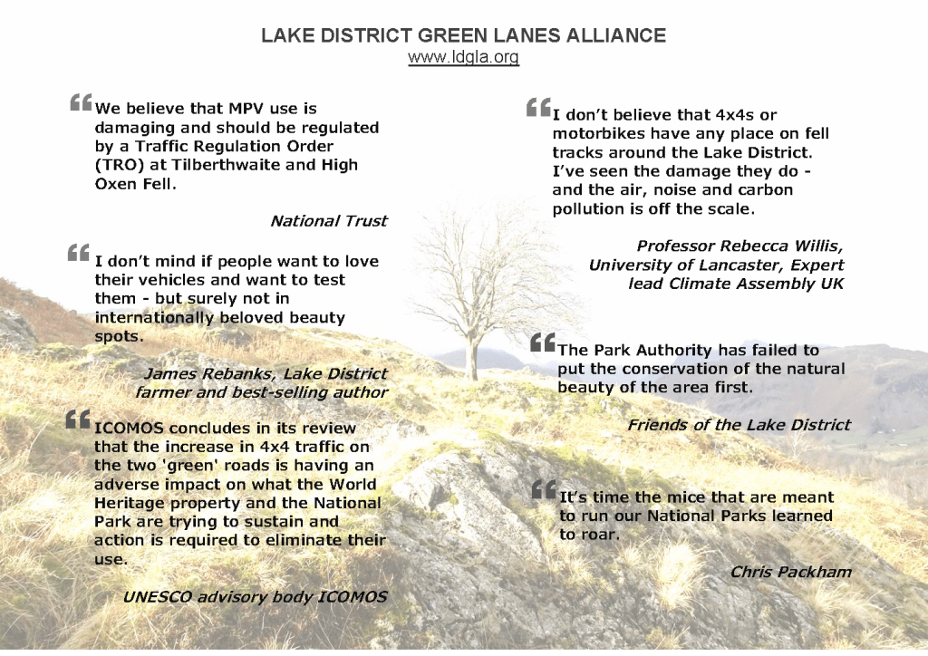 The Lake District Green Lanes Alliance is for everyone who wants to protect the historic green lanes of the Lake District for quiet, non-motorised recreation and farming access.